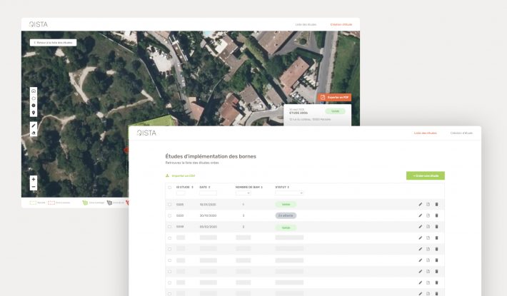 Client Qista Type de projet Création / innovation Description Qista est une entreprise française spécialisée dans la lutte anti-moustique écologique et innovante. Elle a développé une borne anti-moustique qui attire et capture les moustiques en simulant la respiration humaine, grâce à la diffusion de dioxyde de carbone et d’un leurre olfactif. Outils Adobe XD Asana Miro Contexte & mission Qista réalise en interne des études d’implantation afin d’optimiser le positionnement des bornes en fonction de différents facteurs. L’objectif de la solution était de simplifier et de rendre intuitive cette étude : à partir d’une vue satellite et d’une adresse, l’utilisateur pouvait définir différentes zones, et une IA générait un point optimal en fonction des zones définies Les missions : Créer un parcours utilisateurs permettant de simplifier létude UX/UI Tests utilisateur