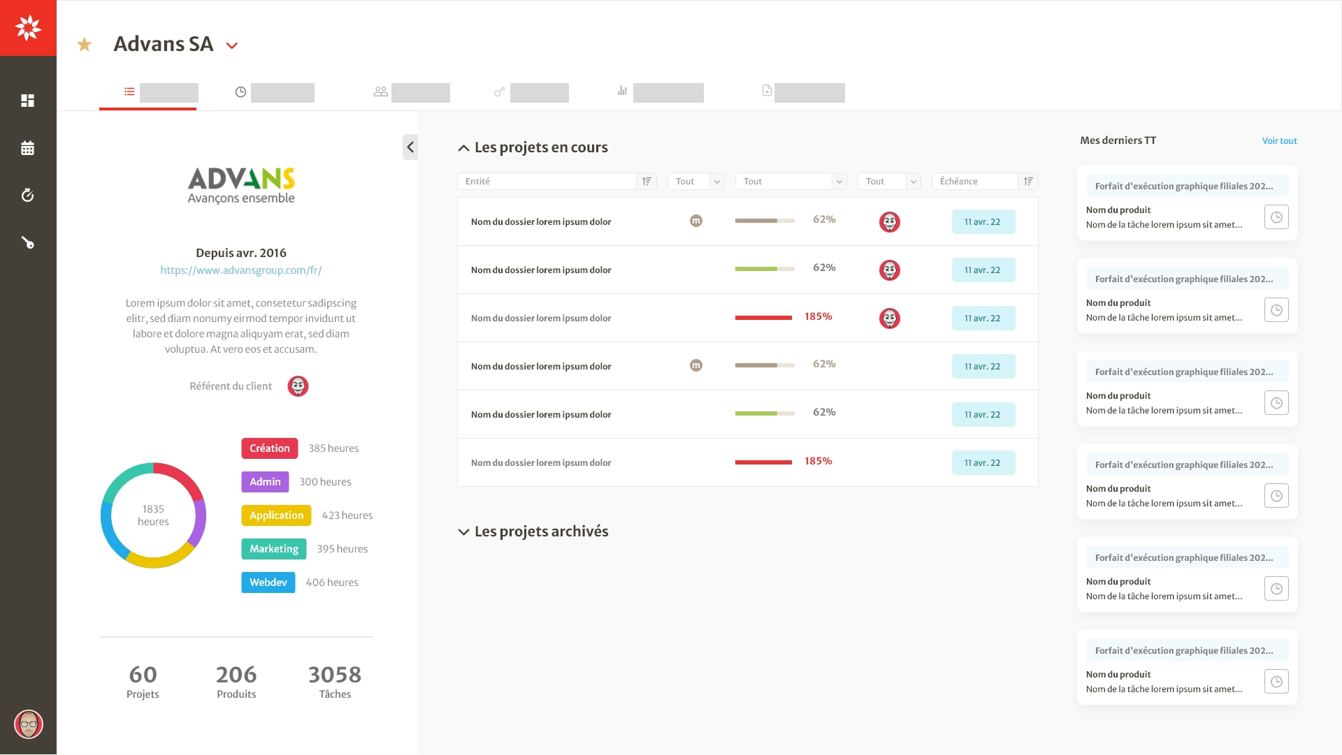 Glanum dispose d'un outil interne pour les employés afin de réaliser le suivi des projets.