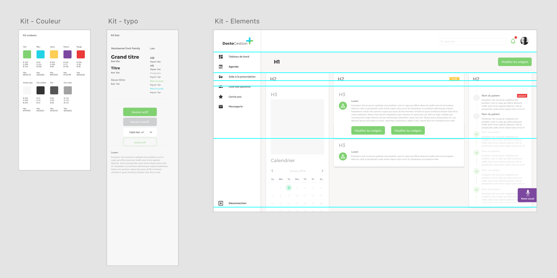 Client Ynov Type de projet Projet d'étude Description Réalisation d'un outil de gestion de de cabinet médical, aidant les praticiens a gérer les rendez vous, les patients et les médicaments Outils Adobe XD Réalisation Charte graphique Parcours utilisateur Wireframes UX UI Lorem ipsum dolor sit amet, consectetur adipiscing elit. Ut elit tellus, luctus nec ullamcorper mattis, pulvinar dapibus leo.